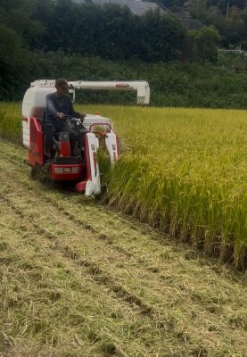 稲刈り作業は、コンバイン(稲刈り機)を使って進めていきます。