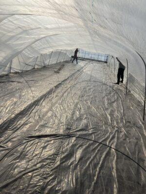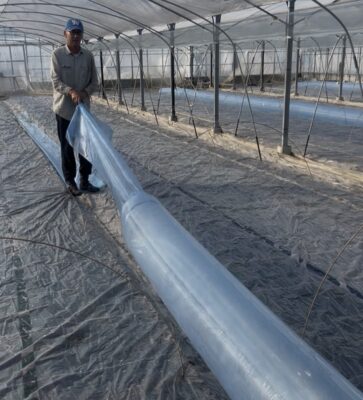 今回は、スイカ定植前に行ったハウス内の準備作業を、